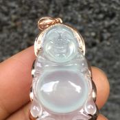 冰种晴水笑佛翡翠吊坠 完美无纹裂
