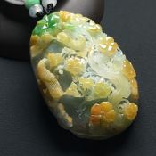 巧雕黄加绿喜上眉梢 翡翠吊坠 尺寸:66-44-15.5毫米