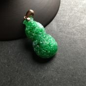 冰种满绿 仿古葫芦翡翠吊坠 18K金扣 尺寸28-15-7毫米