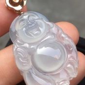 冰带底色佛公 翡翠吊坠 尺寸36.6*22.8*8.9mm