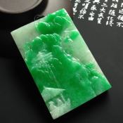 冰种飘绿花山水牌翡翠吊坠 尺寸54-36-5毫米