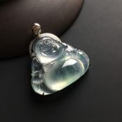 冰种飘花佛公 翡翠吊坠 整体尺寸25-28-9毫米