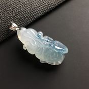 冰种飘蓝花百财翡翠吊坠 白金扣 尺寸48-19-12毫米
