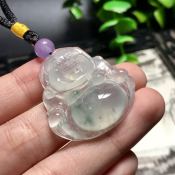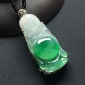 冰种飘花佛公 佛翡翠吊坠 尺寸:30.5*29.8*7.2mm