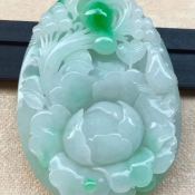 巧雕阳绿喜上眉梢 翡翠吊坠 尺寸60-43-16毫米