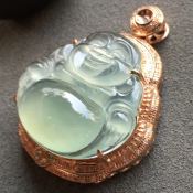 冰种满色佛公 佛翡翠吊坠 18k金奢华钻石 大小:21.5*16.1*3mm