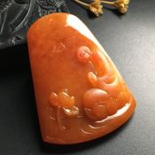 冰种黄翡 悠然自得翡翠吊坠 尺寸71-39-13毫米