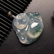 冰飘花笑佛 翡翠吊坠 尺寸: 31-28.5-7.5mm