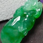 冰阳绿灵猴献寿翡翠吊坠 尺寸49*22.5*11.5