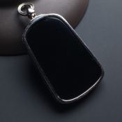 冰种墨翠无事牌 翡翠挂件 尺寸:50-28-5.5