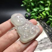 冰种宝宝佛 佛翡翠吊坠 尺寸:45.5*31.0*6.8mm