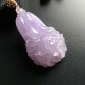 冰种紫罗兰百财翡翠吊坠 18K金扣 尺寸43-25-13毫米