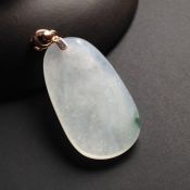 糯冰种飘绿无事牌翡翠挂件 18K金扣 尺寸31-17-3毫米