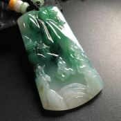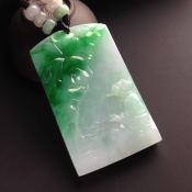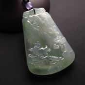飘绿山水牌 翡翠吊坠 尺寸61-35-6.2毫米