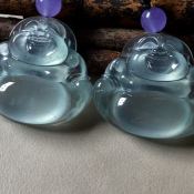冰种阳绿笑佛 翡翠挂件 整体尺寸:44-40-11