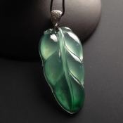 冰种绿底叶子 翡翠挂件 尺寸36-18-6mm