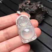冰种佛公 佛翡翠吊坠 白金扣 尺寸28-34-8.5毫米