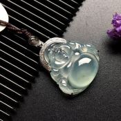 冰种飘花笑佛 翡翠吊坠 裸石尺寸: 24-24-6mm