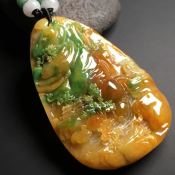 黄加绿山水牌 翡翠挂件 尺寸60-42-10毫米