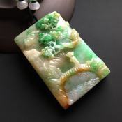 冰种飘绿花山水牌 翡翠吊坠 尺寸63-44-7.5毫米