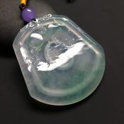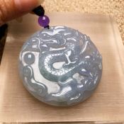 吊坠 糯种带紫龙牌翡翠吊坠