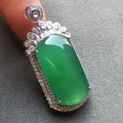 冰种满色 方牌翡翠吊坠