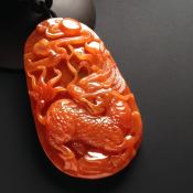 巧雕红翡 缅甸天然龙牌翡翠挂件 尺寸71-42-10毫米