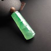 冰种绿底 缅甸天然竹节翡翠挂件 18K金扣 尺寸35-12-7毫米
