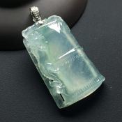 冰糯种飘绿翡翠吊坠 无事牌翡翠吊坠