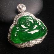 阳绿佛公 翡翠吊坠 真金真钻镶嵌 种水超好