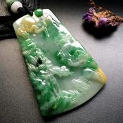 62-41-6mm黄加绿山水牌 翡翠吊坠