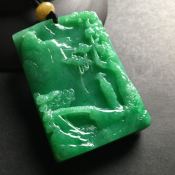 细糯种阳绿深山会友 翡翠吊坠 尺寸54-34-11毫米
