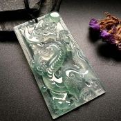 冰飘花龙牌翡翠挂件 尺寸: 54-30-5mm