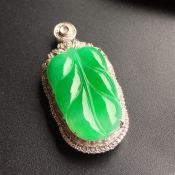 阳绿叶子 翡翠挂件 裸石尺寸:25.3*14.8*2.3