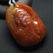 巧雕红翡忠义关公吊坠 尺寸:64-45-11毫米