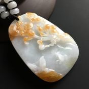 巧雕黄翡鸟语花香翡翠吊坠 尺寸54-34-13毫米