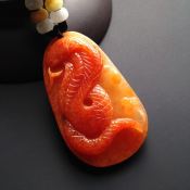 巧雕红翡 生肖蛇吊坠翡翠吊坠 尺寸52-30-10毫米
