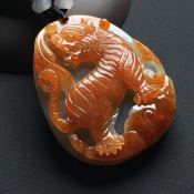巧雕红翡虎牌吊坠 尺寸:55-45-11.5毫米