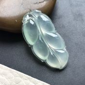 冰种叶子 翡翠挂件 尺寸:27.4*13.6*3.7
