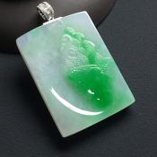 冰糯种阳绿翡翠吊坠 尺寸36.6*36.6*7.6