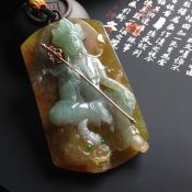 巧雕带色悠然自得 翡翠吊坠 尺寸:65-50-11毫米