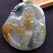 冰种飘花翡翠佛公 翡翠吊坠 裸石尺寸30-32-8毫米