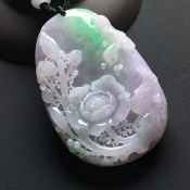 巧雕春彩花开富贵 翡翠吊坠 尺寸:62-41-12.3毫米