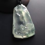 冰种飘花淡泊人生 翡翠挂件 尺寸53-35-8mm