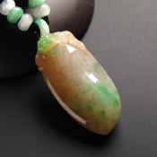 糯冰种黄加绿福瓜 翡翠吊坠 尺寸43-21-13毫米