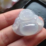 冰种晴绿布袋佛 佛翡翠吊坠 尺寸35-50-10毫米