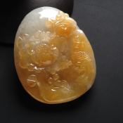 巧雕黄翡花开富贵翡翠吊坠 尺寸55-42-14毫米