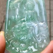 老坑料冰种果色 文殊菩萨翡翠吊坠