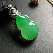 冰种阳绿 葫芦翡翠吊坠 白金镶嵌 尺寸30-18-8毫米
