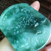 天然A货翡翠冰糯种飘绿龙牌翡翠吊坠 尺寸57*50*5.5
